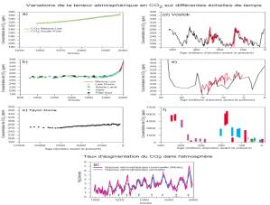 d’élimination. b Ce temps de séjour a été défini comme un "temps d’ajustement" qui tient compte de l’effet indirect du gaz sur son propre temps de séjour. cTaux calculé pour la période 1990-1999. d Le taux a fluctué entre 0,9 ppm/an et 2,8 ppm/an pour le CO2 et entre 0 et 13 ppb/an pour le CH4 durant la période 1990-1999 |