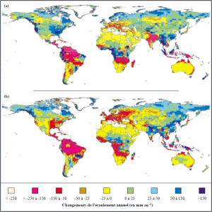 Environ 1,7 milliard de personnes, soit un tiers de la population mondiale, vivent actuellement dans des pays qui souffrent de stress hydrique (c’est-à-dire qui utilisent plus de 20 pour cent de leurs ressources en eau renouvelables, indicateur courant du stress hydrique). Ce chiffre passerait à 5 milliards d’ici 2025, selon le taux de croissance démographique. Les changements climatiques pourraient réduire encore l’écoulement et la recharge des nappes souterraines dans nombre de ces pays (Asie centrale, Afrique australe, pourtour méditerranéen) et les accroître dans d’autres.