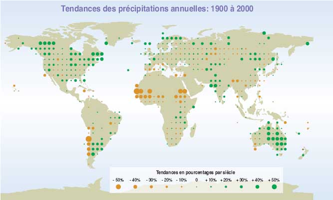 Pendant le XXe siècle, en moyenne, les précipitations ont augmenté sur les continents