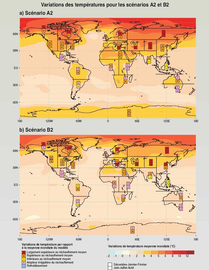 de réchauffement de 1,7 à 6,3°C pour A2 et 1,3 à 4,7°C pour B2. GTI TRE Figures