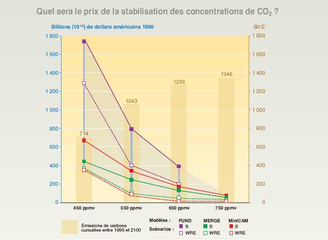 pour la période 1990–2100) de la stabilisation des concentrations de CO2
