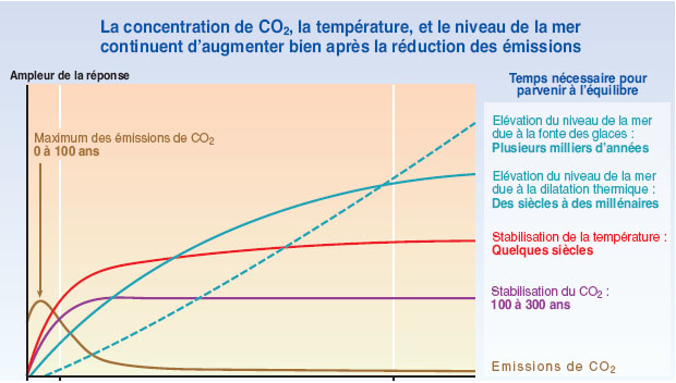 des émissions de CO2, et la fonte des inlandsis continue de contribuer