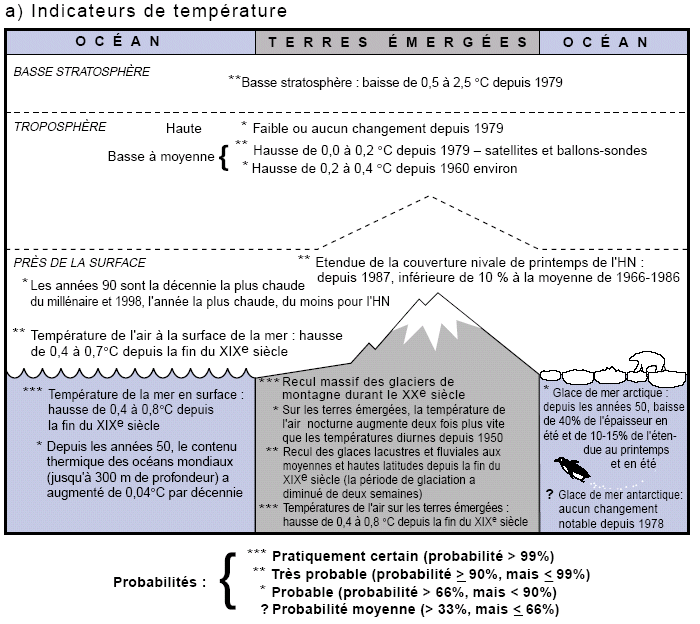 Schéma des variations observées des indicateurs de température. [Fondé sur la