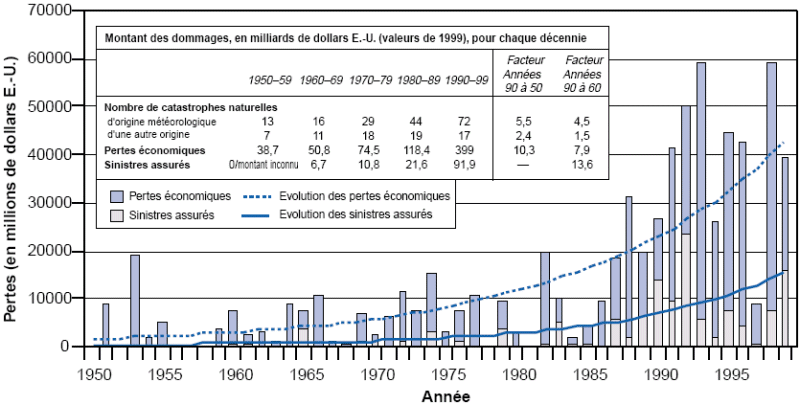 90 (en dollars de 1999). La part assurée de ces pertes, négligeable