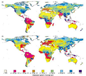 Глобальный среднегодовой уровень осадков в XXI веке должен, по прогнозам, увеличиться, хотя в региональном масштабе прогнозируется как увеличение, так и уменьшение, в общем и целом, на 5-20%. Вполне вероятно, что уровень осадков увеличится в регионах, расположенных в высоких широтах, как в летнее, так и в зимнее время. Увеличение также прогнозируется в средних широтах северного полушария, тропической Африке и Антарктике в зимнее время и в южной и восточной части Азии в летнее время. Что касается Австралии, Центральной Америки и южной части Африки, то, по прогнозам, уровень осадков в зимнее время в виде дождя будет постоянно снижаться. Вполне вероятно, что в большинстве районов, в которых прогнозируется увеличение среднего уровня осадков, будут наблюдаться более широкие годовые колебания в режиме осадков. |