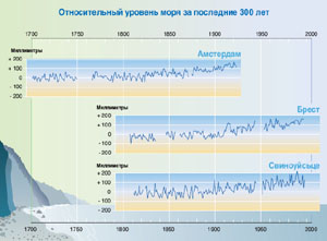 суши по сравнению с поверхностью океана с 1976 по 2000 год (см. рисунок