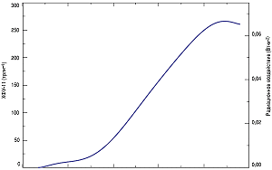 ![]() Рисунок ТР-12. Глобальное среднее содержание (ППТ) ХФУ-11 (CFCl3) в атмосфере в период с 1950 г. по 1998 г., рассчитанное на основе сглаженных данных измерений и результатов моделей выбросов. Радиационное воздействие ХФУ-11 показано на оси справа. [Основано на рисунке 4.6] |