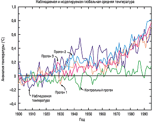 Уверенность в способности моделей прогнозировать будущий климат повышается благодаря способности нескольких моделей воспроизводить тенденции потепления температуры приземного воздуха в ХХ веке, когда этот процесс находится под воздействием повышающейся концентрации парниковых газов и сульфатных аэрозолей. Это показано на рисунке ТР-13. В то же время использовались лишь идеализированные сценарии сульфатных аэрозолей, и в модели нельзя включать факторы некоторых дополнительных процессов и воздействий. Некоторые исследования на основе моделей показывают, что включение дополнительных воздействий, таких, как изменчивость солнечной энергии и вулканические аэрозоли, могут улучшить некоторые аспекты имитированной изменчивости климата ХХ века.