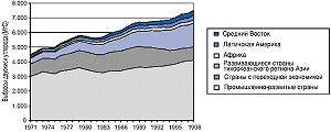 Рисунок ТP-4. Мировые выбросы СО2 по регионам, 1971—1998 гг. |