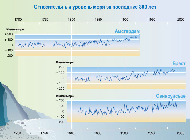постоянной регистрации уровня моря за последние 300 лет, которыми располагает