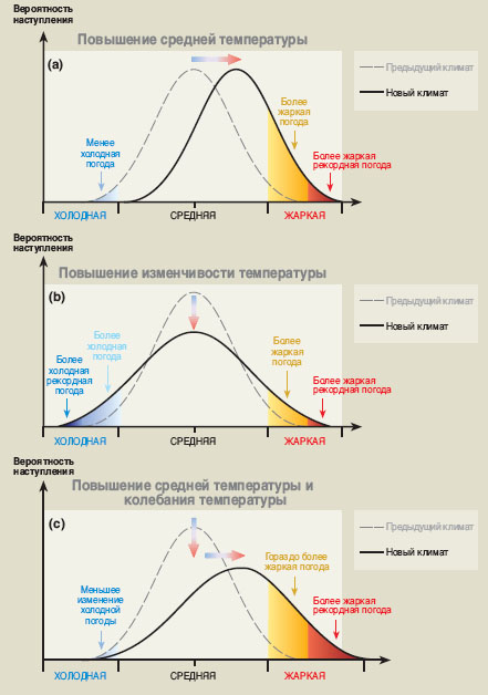увеличение изменчивости температуры, и с) когда как увеличение средней температуры,