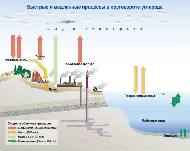 шкал, характерных для основных процессов глобального круговорота углерода,