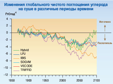 рост объема чистого поглощения углерода в течение нескольких десятилетий, после