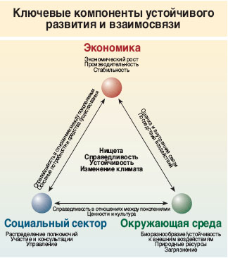 иллюстрируют три главных компонента или области устойчивого развития: экономика,