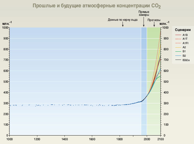 керну льда и прямых атмосферных замеров в течение нескольких прошлых десятилетий.