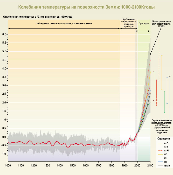 моделей с иной чувствительностью климата. Точкой отсчета на температурной шкале