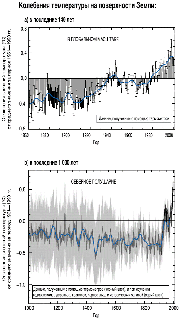 глобальная средняя приземная температура повысилась на 0,6±0,2 °С.