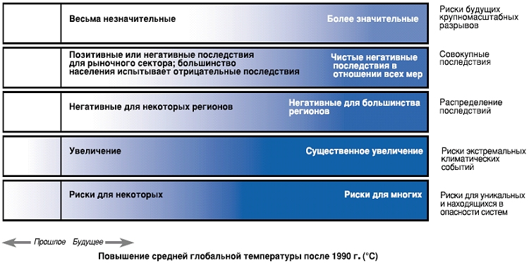 последствия или риски меняются при различных темпах изменения климата. Эти температуры