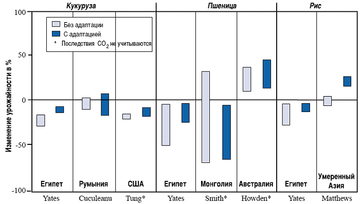 selected climate change scenarioswith and without agronomic adaptationfrom