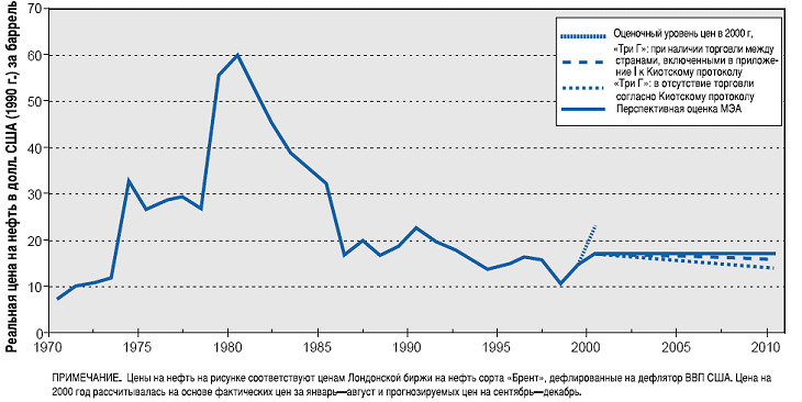 Реальные цены на нефть и воздействие мер по осуществлению Киотского протокола.