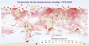 de los océanos en el período 1976–2000 (véase la Figura