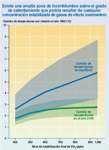 entre 1,5 y 3,9ºC por encima de los niveles de 1990 para una estabilización