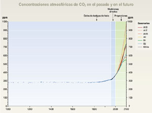 preindustriales de unas 280 ppm y las 368 ppm del año 2000). |