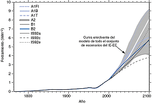 En casi todos los escenarios del IE-EE, el forzamiento radiativo causado
