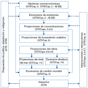 Esta Sección encara el futuro desde una perspectiva diferente. Hay incertidumbres en todos los eslabones de la cadena, desde las emisiones de GEI y aerosoles, hasta los efectos que éstos producen en el sistema climático y en la sociedad (véase la Figura 28). Son muchos los factores que continúan limitando la capacidad de detectar, atribuir y comprender el cambio climático actual y proyectar los cambios climáticos que podrían ocurrir en el futuro. Es necesario seguir trabajando en nueve aspectos generales.