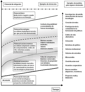 La innovación tecnológica y social es un proceso complejo de investigación, experimentación, aprendizaje y desarrollo que puede contribuir a la mitigación de los GEI. Se han formulado varias teorías y modelos para comprender sus características, motores e implicaciones. Pueden surgir nuevos conocimientos y capital humano a partir de gastos en IyD, mediante aprendizaje experimental y/o un proceso evolutivo. La mayoría de las innovaciones requieren algún cambio social o de comportamiento por parte de los usuarios. Las economías en rápida evolución, así como las estructuras sociales e institucionales, ofrecen oportunidades de inserción a tecnologías de mitigación de GEI que pueden llevar a los países por vías de desarrollo sostenible. Esas vías estarán sujetas a la influencia de determinado contexto socioeconómico que reflejará los precios, la financiación, el comercio internacional, la estructura del mercado, las instituciones, el suministro de información y factores sociales, culturales y de comportamiento, cuyos elementos clave se describen a continuación.