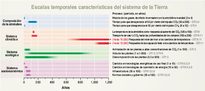 problemas de equidad intergeneracional en todos los procesos con escalas temporales
