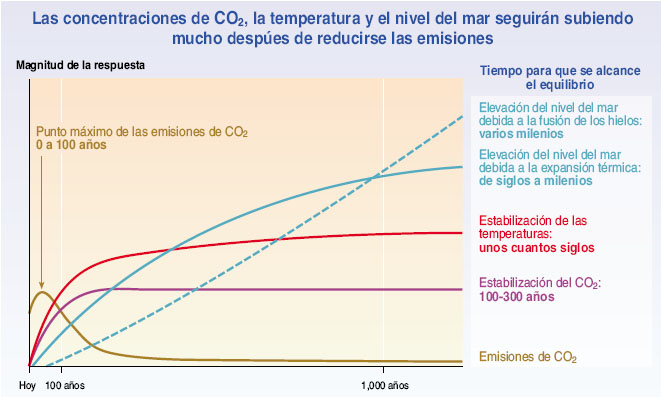 incluso mucho después de haberse reducido las emisiones de CO2, y la