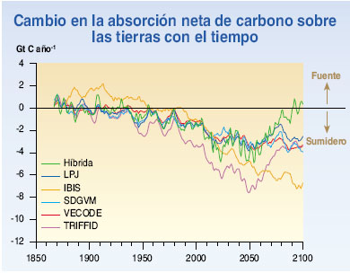 carbono sobre las tierras durante algunos decenios, para luego estabilizarse o