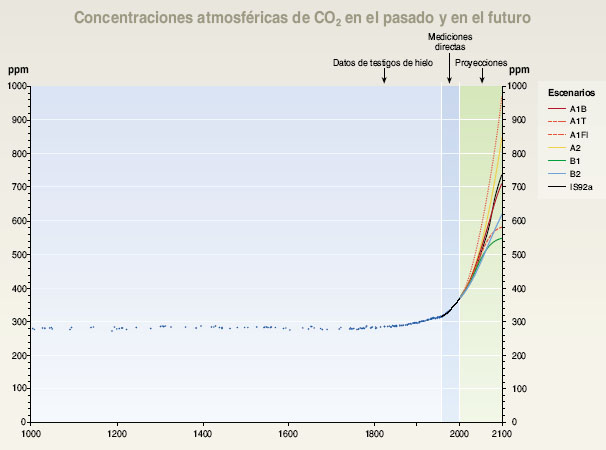 decenios. Las proyecciones sobre concentraciones de CO2 durante el