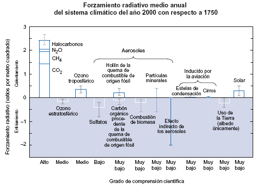 de estos forzamientos —algunos de los cuales producen calentamiento, y otros enfriamiento—.