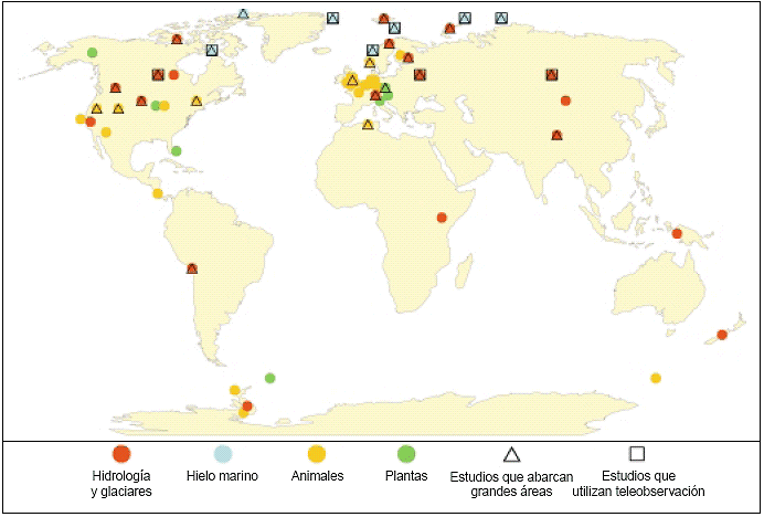 regional relacionados con la temperatura sobre los sistemas físico y biológico.