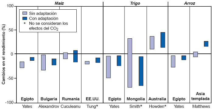 de las barras verticales solamente) que abarcan escenarios de cambio climático
