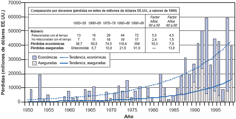 una rápida tendencia ascendente en los últimos decenios. Las pérdidas