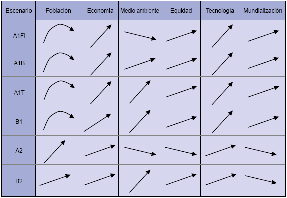 Dirección cualitativa de los escenarios del IE-EE para diferentes indicadores.