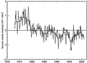Sea-ice extent is expected to become a sensitive indicator of a warming climate,