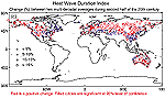 Analyses of 20th century trends in the United States of short-duration episodes (a few days) of extreme hot or cold weather did not show any significant changes in frequency or intensity (Kunkel et al., 1996, 1999; Karl and Knight, 1997). For Australia, Collins et al. (2000) found higher frequencies of multi-day warm nights and days, and decreases in the frequency of cool days and nights. In an extensive assessment of the change in frequency of heat waves during the latter half of the 20th century, Frich et al. (2001) find some evidence for an increase in heat-wave frequency, but several regions have opposite trends (Figure 2.33c). The extreme heat in the United States during several years in the 1930s dominates the time-series of heat waves in that region. On the other hand, trends in the frequency of extreme apparent temperatures are significantly larger for 1949 to 1995 during summer over most of the USA (Gaffen and Ross, 1998). Warm humid nights more than doubled in number over 1949 to 1995 at some locations. Trends in nocturnal apparent temperature in the USA, however, are likely to be associated, in part, with increased urbanisation. Nevertheless, using methods and data sets to minimise urban heat island effects and instrument changes, Easterling et al. (2000) arrived at conclusions similar to those of Gaffen and Ross (1998).