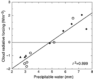 Satellite records provide some access to the study of natural climate fluctuations, such as the seasonal or ENSO cycles, which can be used to test the ability of the models to represent different feedbacks. At these time-scales, however, cloud structures are characterised by large shifts in their latitudinal or longitudinal position, as well as changes in their vertical distribution in response to SST changes. Only those latter effects are really relevant to test climate models in the context of climate change. Bony et al. (1997) have shown that in the inter-tropical regions, it was possible to isolate them by looking at the dependence of cloud properties on SST for specified dynamical regimes. These regressions are remarkably consistent when carried out with different sets of independent data (ISCCP, ERBE, TOVS, SSMI) and offer a constraining test for models. Similar methodologies are being developed for the mid-latitudes (Tselioudis et al., 2000). It is encouraging, though, that CCM3 has demonstrated considerable accuracy in the reproduction of regional all-sky long-wave and short-wave radiation budgets (Kiehl et al., 1998).