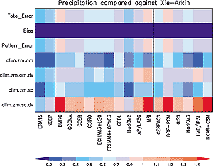 Observational uncertainties are indicated in Figure 8.4 by including extra observational data sets as additional points, as if they were models. These additional points exhibit greater agreement with the baseline observations as expected. It is noteworthy, however, that the differences between alternate sets of observations are not much smaller than the differences between models and the baseline observations. This result implies that in terms of variance and space-time pattern correlation, the models nearly agree with observations to within the observational uncertainty.