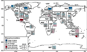 regionally in the majority of cases. However, regions of precipitation decrease