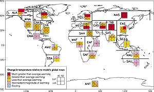 Introduction Analysis The SRES results may be compared with the earlier results summarised in Figures 10.4 and 10.6 (which will be referred to here as the IS92a results). However, it should be noted that these two sets of results differ in the set of models used (both in the model versions and in the total number of simulations), and in the scenarios contrasted in each case (for IS92a it is GHG-only versus GHG+sulphate and for SRES it is A2 versus B2). Also, due to differences in the number of models, thresholds for agreement are not the same in each case (although they have been chosen to be as nearly equivalent as possible).