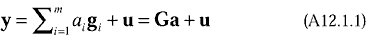 The detection technique that has been used in most “optimal detection” studies performed to date has several equivalent representations (Hegerl and North, 1997; Zwiers, 1999). It has recently been recognised that it can be cast as a multiple regression problem with respect to generalised least squares (Allen and Tett, 1999; see also Hasselmann, 1993, 1997) in which a field of n “observations” y is represented as a linear combination of signal patterns g1,...,gm plus noise u