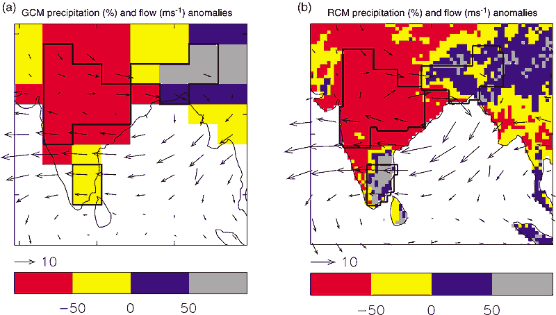 by (a) GCM and (b) RCM. Each field is the difference in the break and active composite