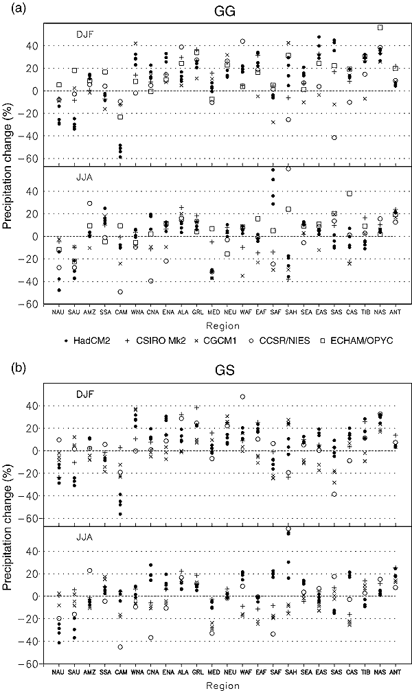 , but for percentage precipitation change (from Giorgi and Francisco, 2000b).
