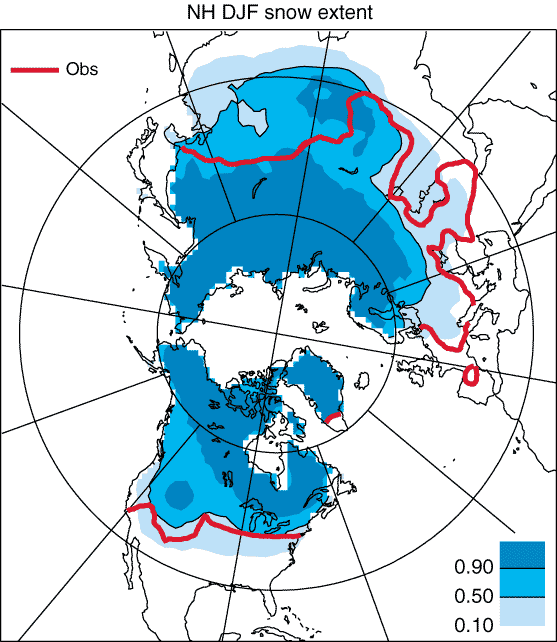 of the range of snow cover extent in CMIP1 model simulations listed in Table