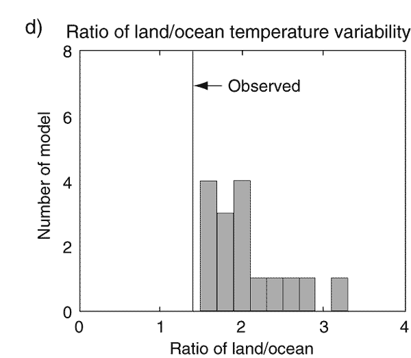 variability; four models show less than observed amounts of variability. (d) Ratio